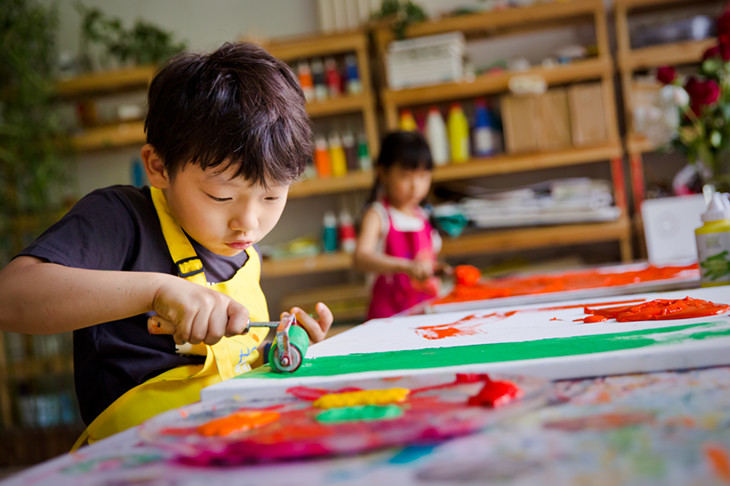 A階段,孩子6-7歲,這個階段屬于色彩的敏感期,我們的思維都在茁壯的養育。6-7歲的兒童已經進入預備入學階段,咱們針對這個階段的孩子課程結構也有一個新的調整,主要組成有:藝術創作+色彩訓練=色彩能力;藝術創作+系統知識=可視化思維。