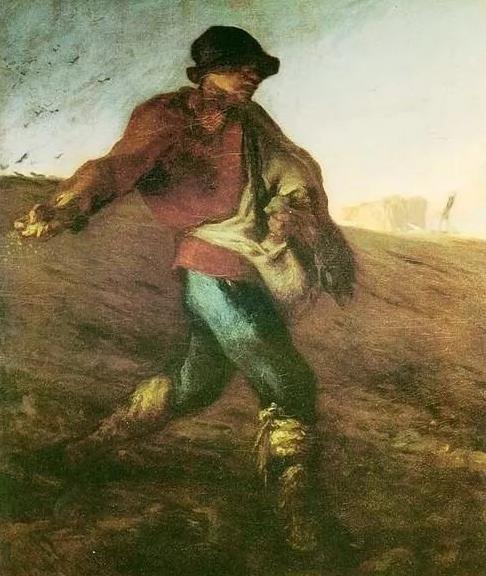 我們舉個例子,比如法國巴比松派畫家米勒,他最有名的是像《播種者》、《牧羊少女》、《拾穗者》等一系列農民題材的作品。
