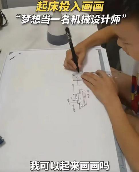 在視頻中,男孩的媽媽還說,孩子從5歲開始就喜歡畫飛機(jī)、坦克,長大后想成為一名機(jī)械設(shè)計(jì)師,去設(shè)計(jì)坦克。