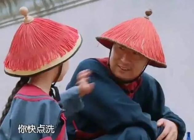 大竣說:也開心呀。跟爸爸在一起,我干什么都開心呀。什么時候都要和爸爸在一起,演乞丐,演皇后都要和爸爸在一起。