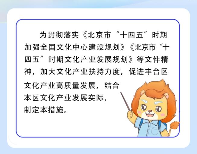 4月16日,北京市豐臺區 舉辦促進文化產業高質量發展政策創新發布活動,現場發布了《豐臺區促進文化產業高質量發展的若干措施(試行)》(簡稱《若干措施》),推出9條具體措施,并成立豐臺區文化產業園區聯盟,希望通過良好的政策和資金支持,培育一批具有國際競爭力的文化企業。(具體政策詳見文章尾部)
